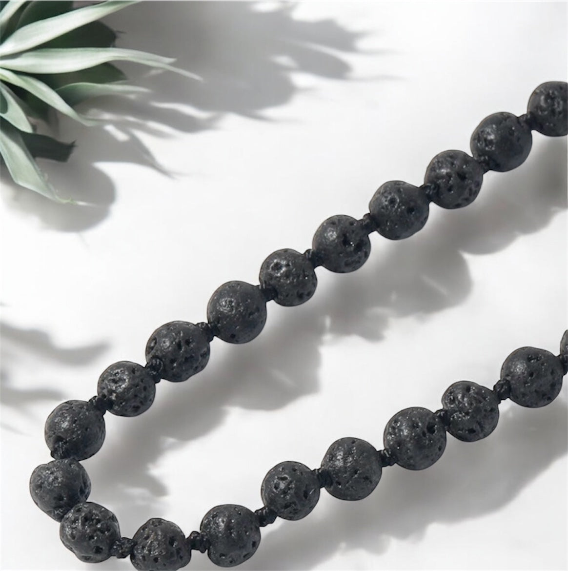 • 108 natural Lava Stone beads (6mm) – chosen for their grounding and energizing properties.